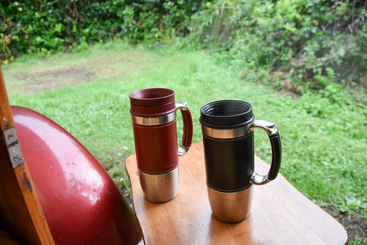 Tea and coffee in bed the next morning, waiting out the rain.
