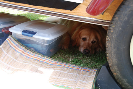 Bailey resting under the trailer.